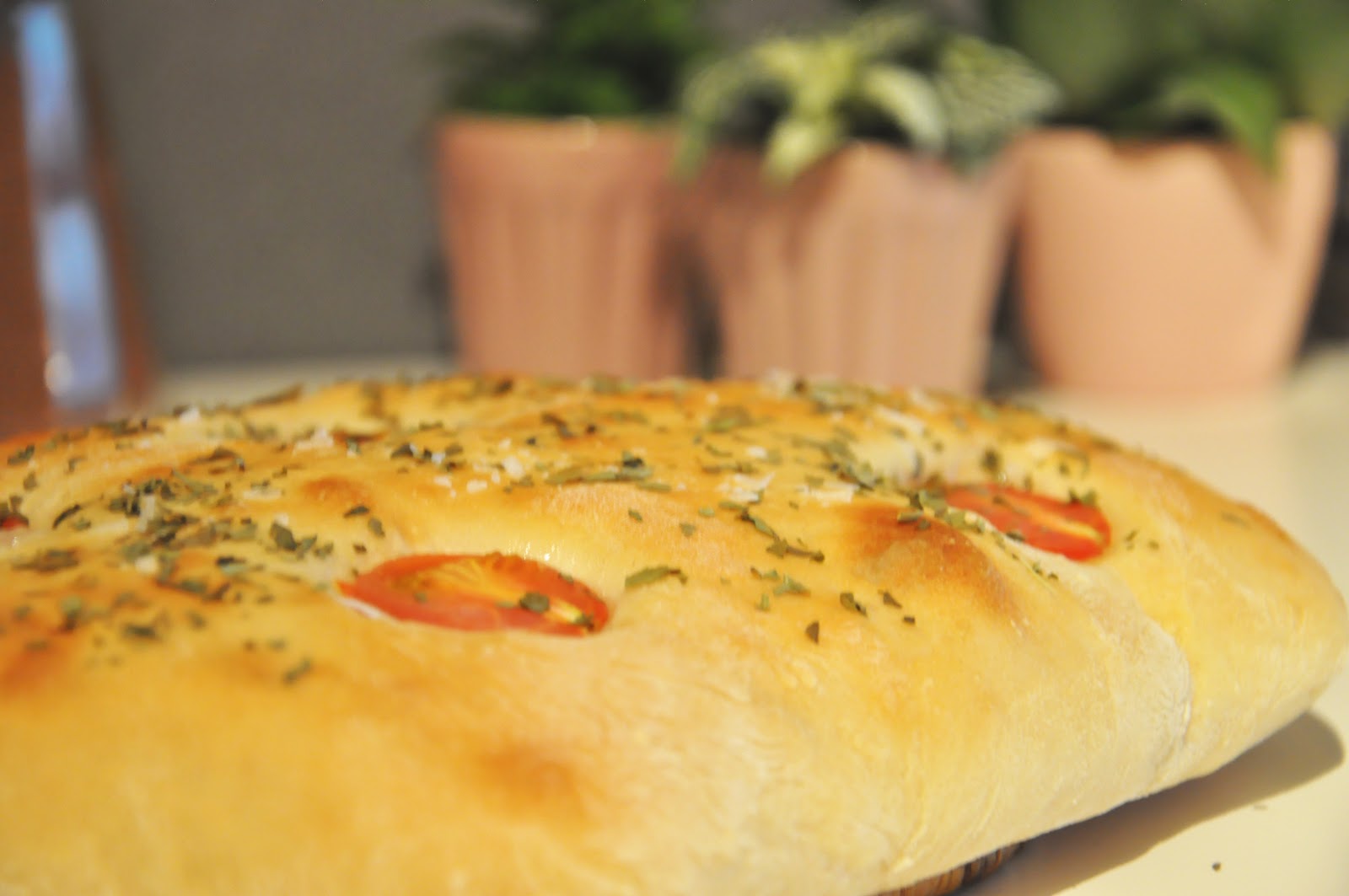 Focaccia med körsbärstomater och basilika